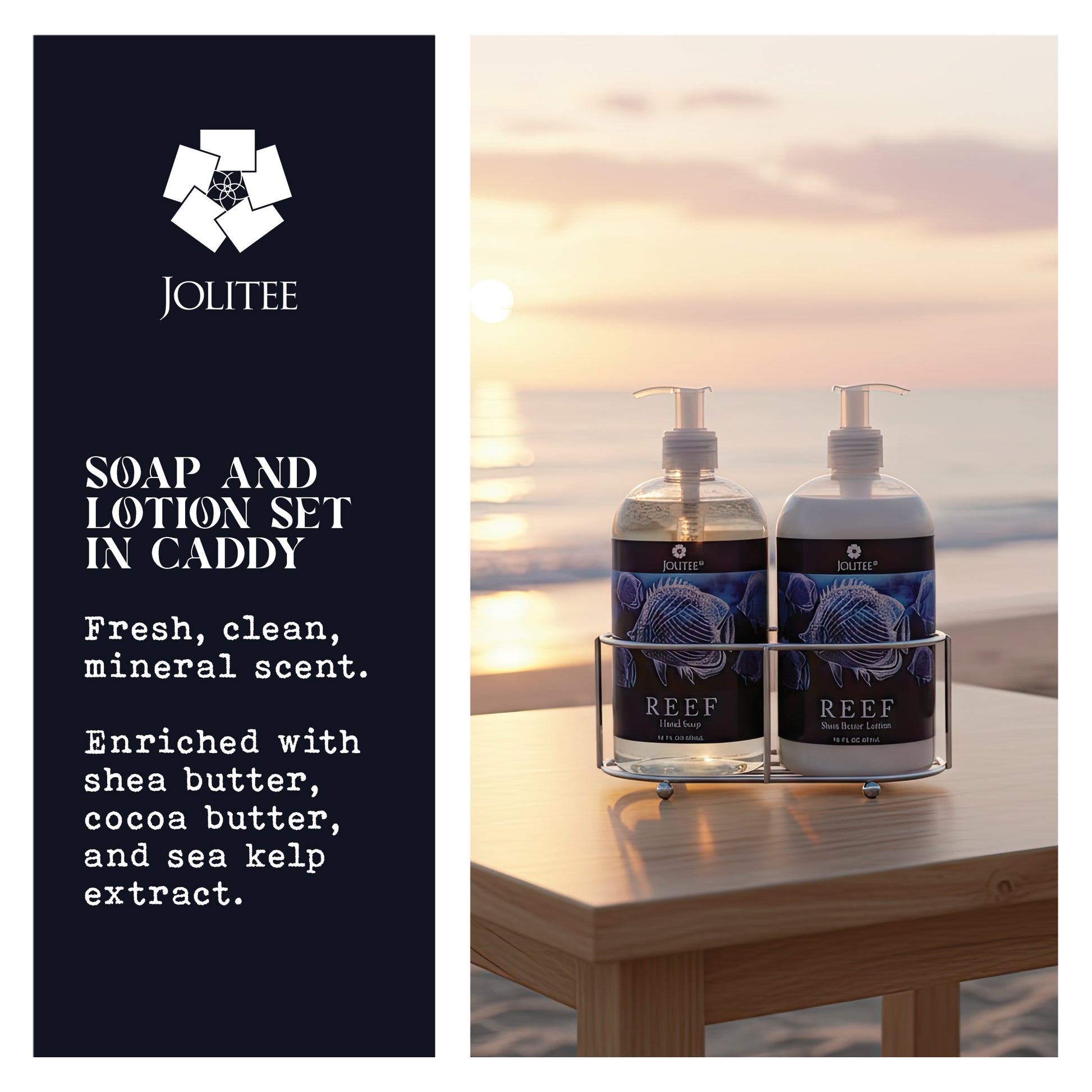 Reef Luxury Shea and Cocoa Butter with Sea Kelp Extract (Soap and Lotion Set in Caddy)
